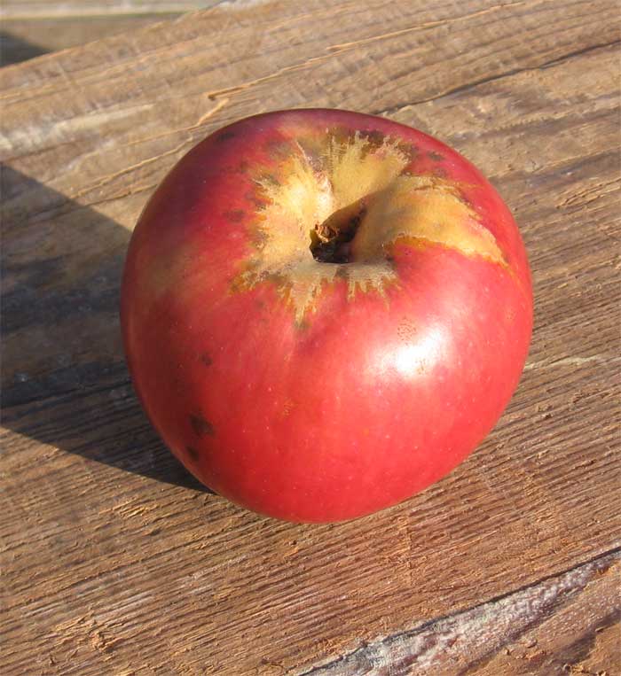Virginia Beauty..............Va. Beauty apples are notable for their russetted "bonnet" on top (see right image.)